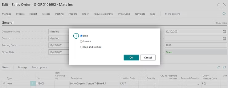 Now, this order is going to be processed in Business Central.