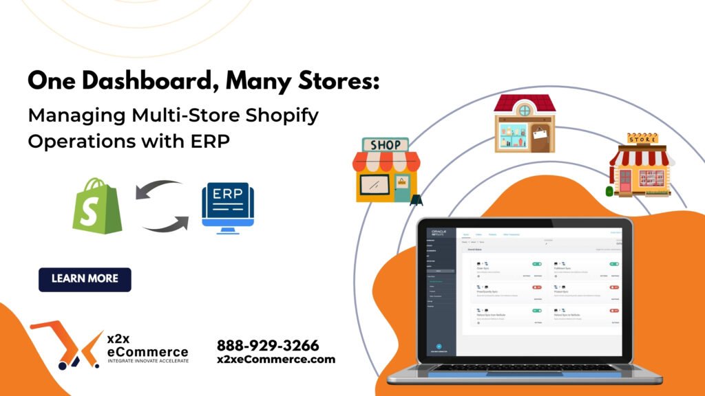 In today’s world, where multi-store e-commerce is the new normal, success is about how efficiently you manage your operations. One dashboard. One source of truth. One ERP. By integrating multiple Shopify stores with your ERP, you cut through chaos, make better decisions, and scale globally with confidence. Ready to unify your multi-store operations? Let x2xeCommerce connect your Shopify ecosystem with your ERP and manage every store from one powerful dashboard.